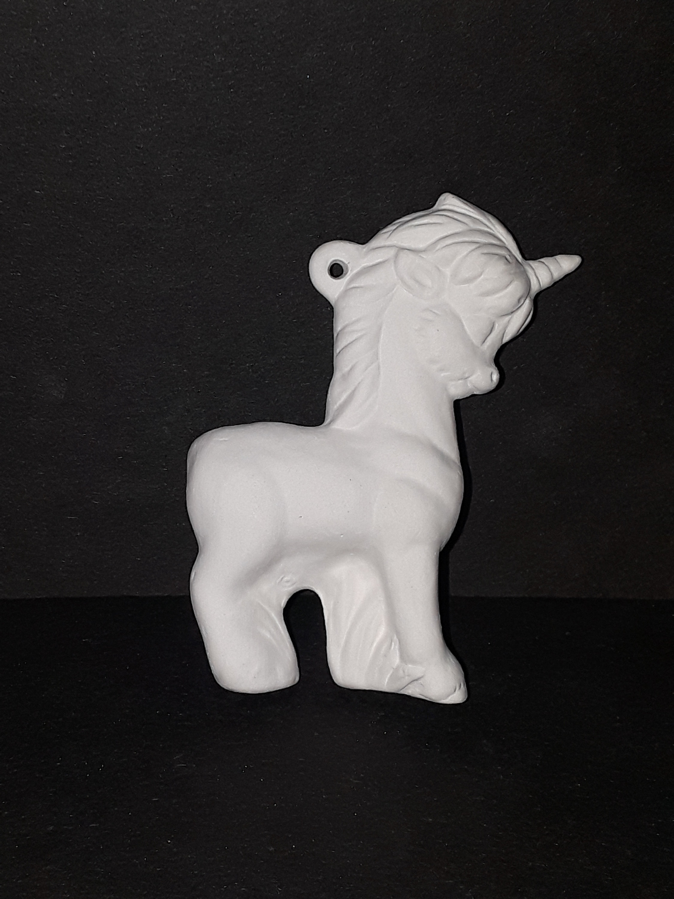 Here is ceramic bisque mama and baby unicorn Ornament ready to paint 3 1/4" t x 2" w